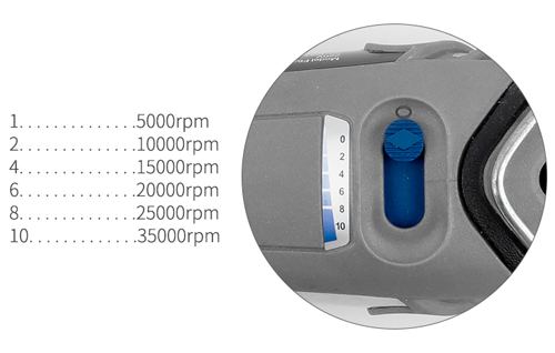 5,000~35,000 rpm,,可調增量(liàng)為5000 rpm